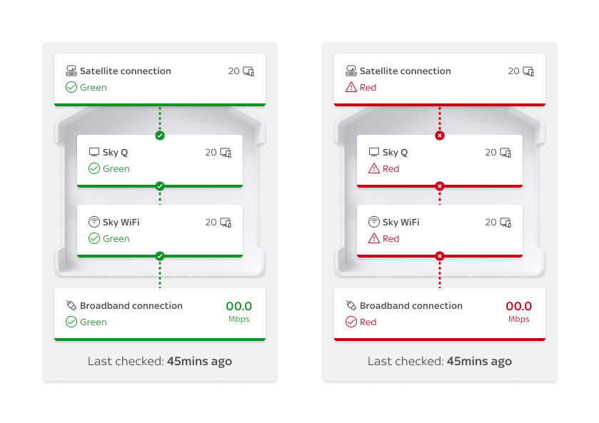 If no issues are detected the house shows as green but if any of the data we use to populate the house shows an issue then that area of the house will turn red. If that issue has a knock on impact to another part of the house then it will show as amber